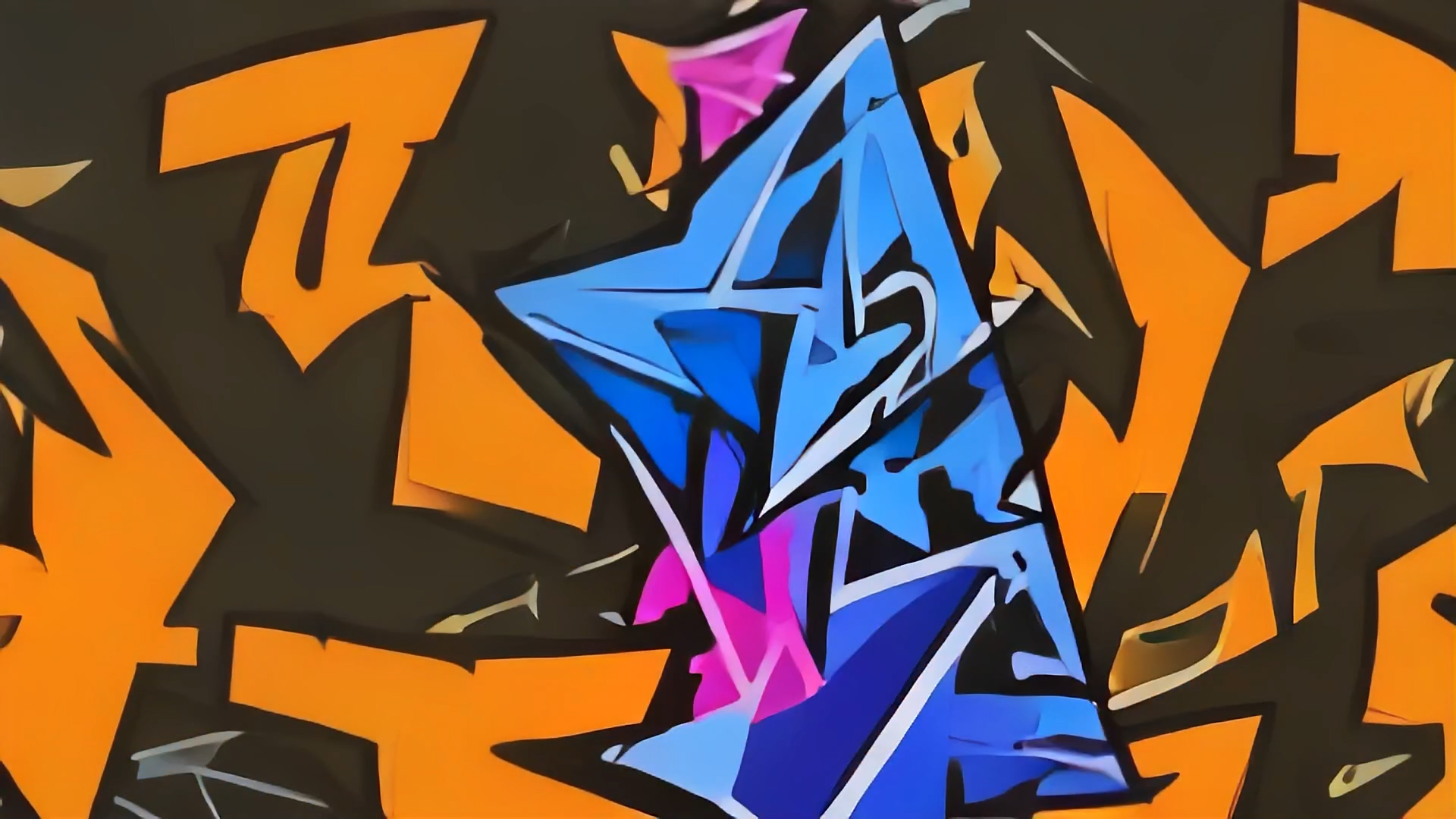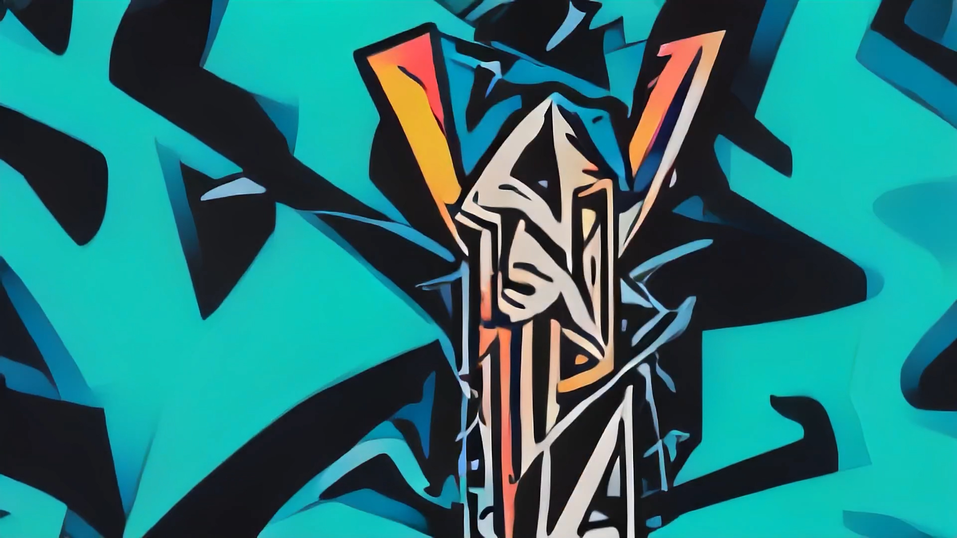 The background without any webcam input moves slowly and comprises large shapes. In contrast, webcam input is set up to generate detailed shapes and color them in complementary colors.