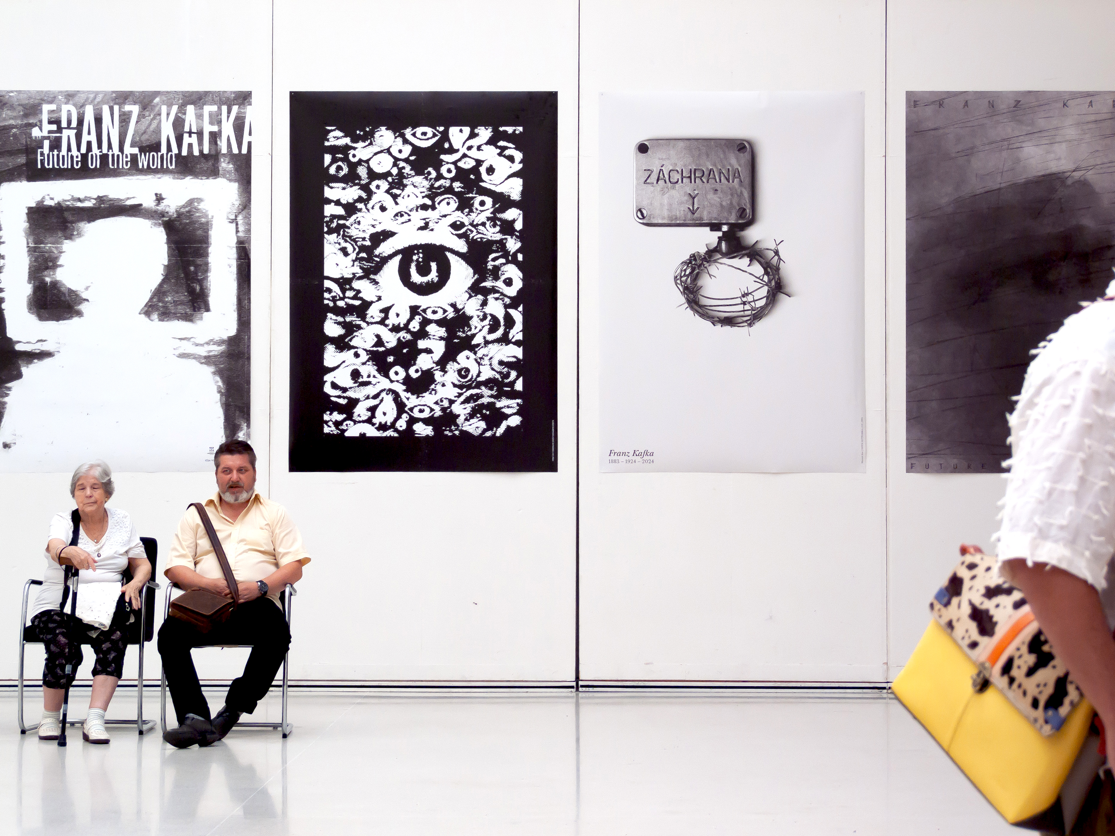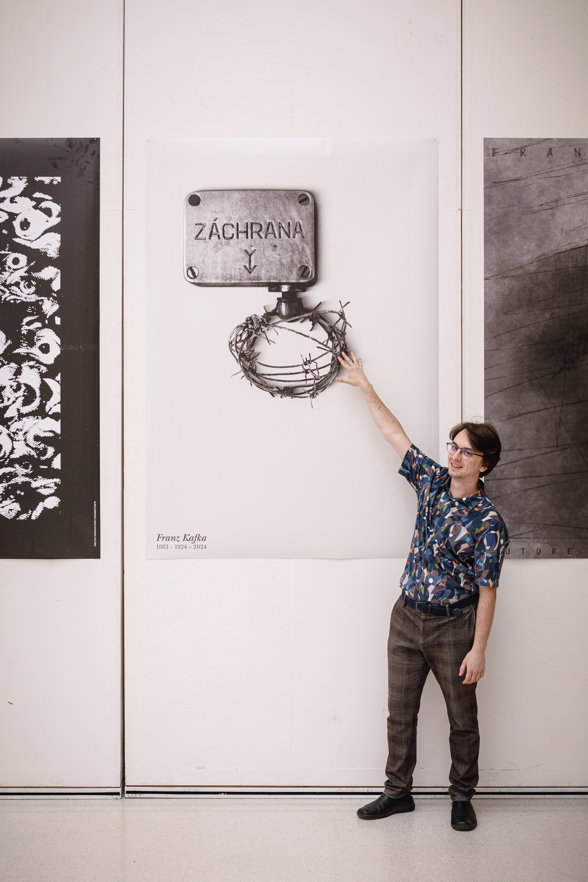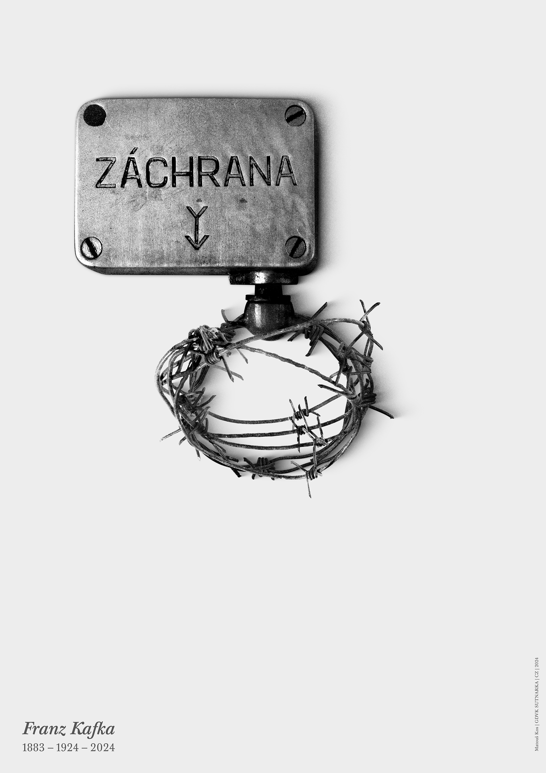 My university joined the celebrations of Franz Kafka's legacy on the occassion of his 100th anniversary of death and tasked students with creating posters that reflect the thoughts and works of the great writer. On my poster, there is an emergency break found in older czech trains. However, instead of the standard handle which is pulled down to stop the train, a barbed wire is attached. The poster reflects the feeling of hopelesness arising from the inability to stop the processes leading to our demise either as an individual or as a society at large. In this sense, the poster could also work as a book cover for The Trial.
