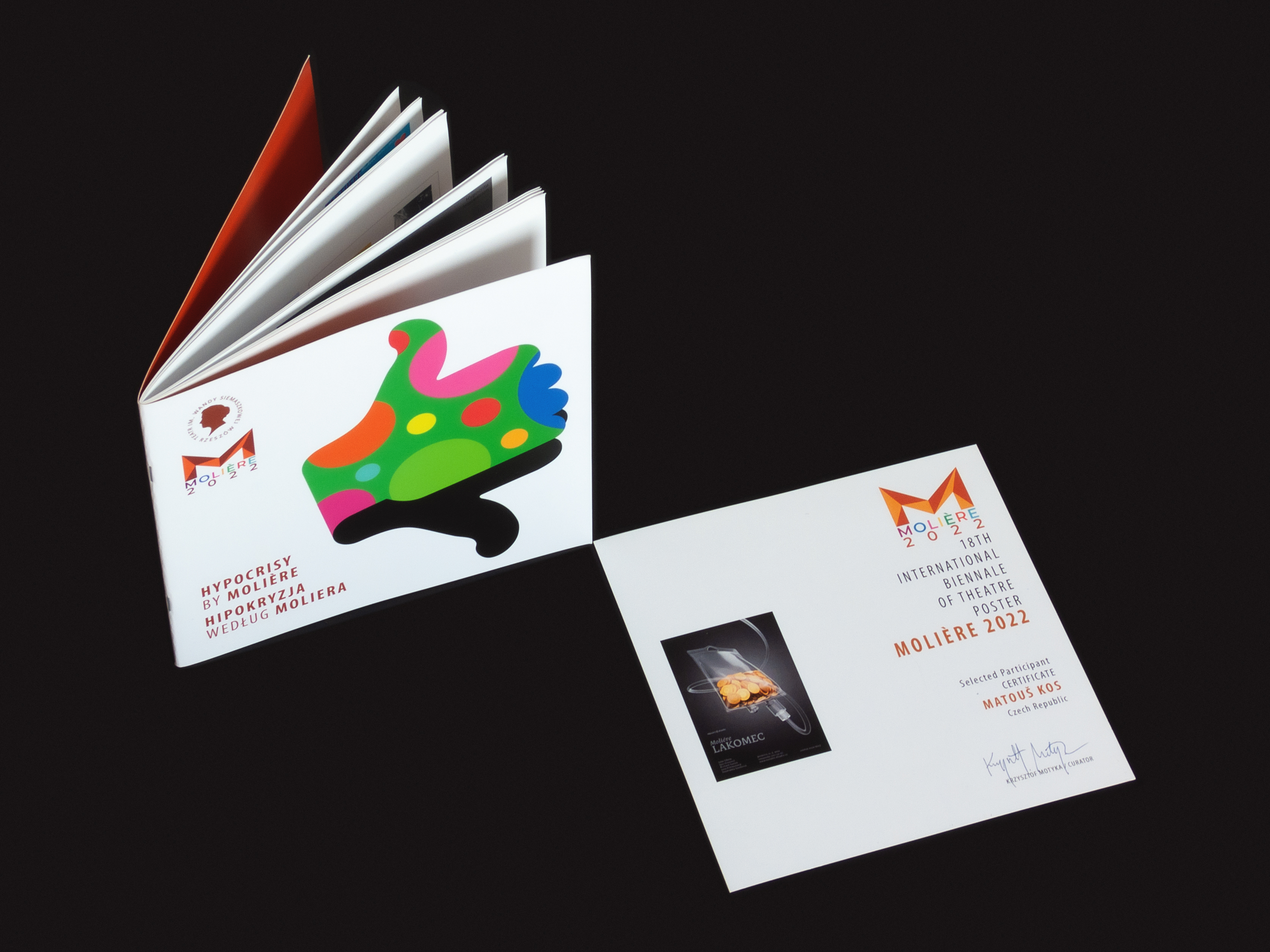This poster has qualified for Internaional Biennale of Theatre Poster: Molière 2022 held by Teatr im. Wandy Siemaszkowej in Rzeszów, Poland. It was exhibited there and also included in the official catalogue. The poster has also been nominated for Czech International Student Design Award 2022 and exhibited in Pilsen, Czech Republic.